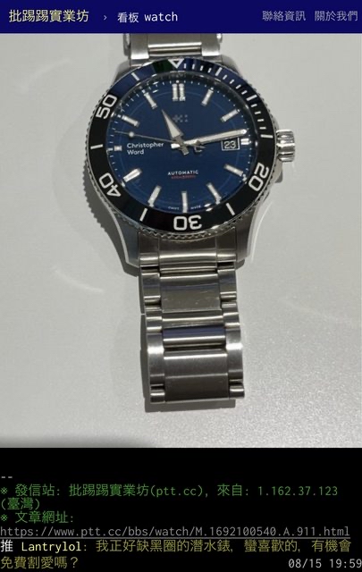 → jamesma20002: 所以為什麼有閒錢送勞力士沒錢買CW 09/14 15:16