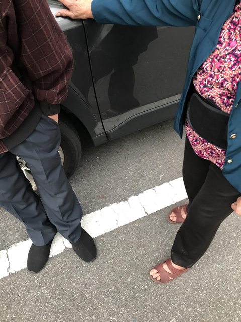 : 阿嬤你這樣會不會冷,外套要不要扣起來