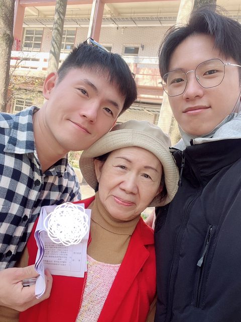 附上昨天熱騰騰去投票的新鮮照片,我媽與我帥氣的外甥,最近被他笑小我十歲