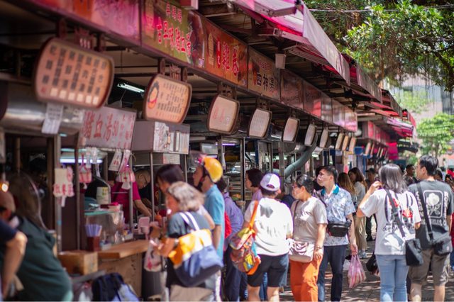 (傳統美食群聚的大稻埕慈聖宮廟前,