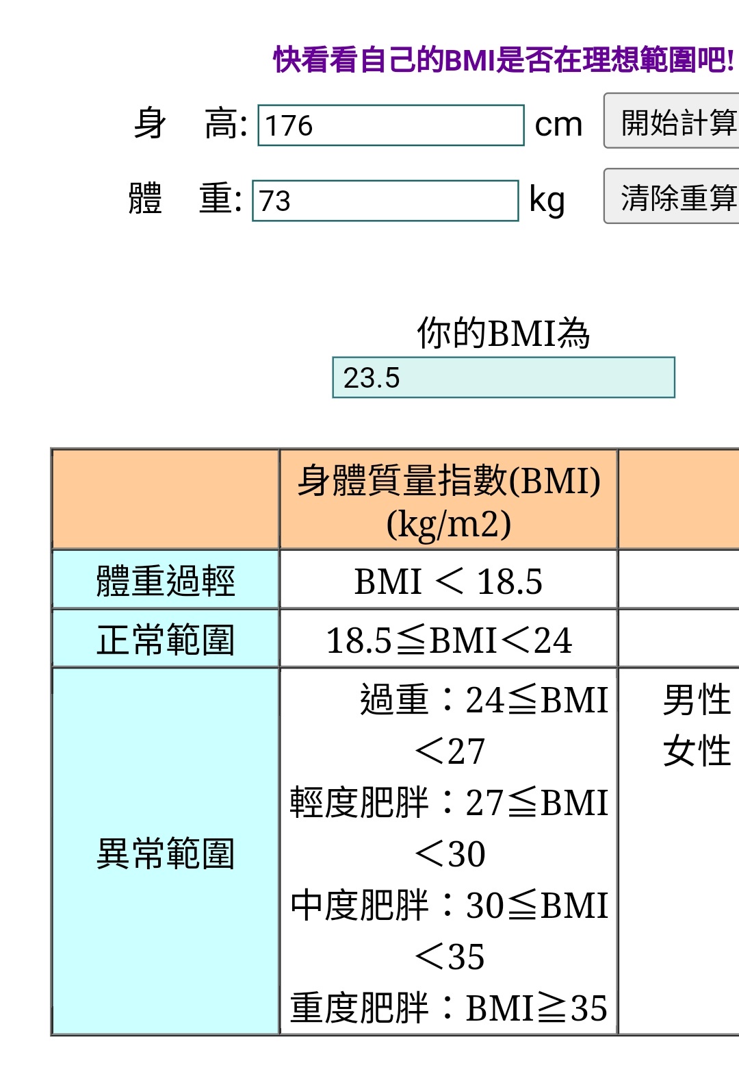 → sodahaini: 你的bmi算法是? 39.14.34.204 07/11 10:03