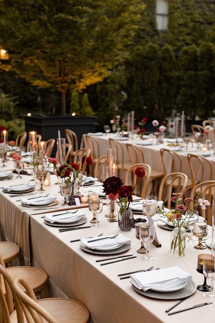 場六道精緻法式料理的晚宴,當天還能觀賞精心佈置的戶外婚禮場地。