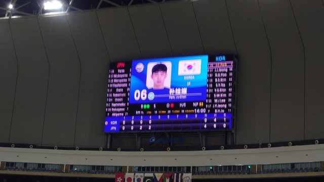 假日的中午 雖然這次日韓代表派過來的都是練兵,但進場來是踴躍今天應該有7-8千人的