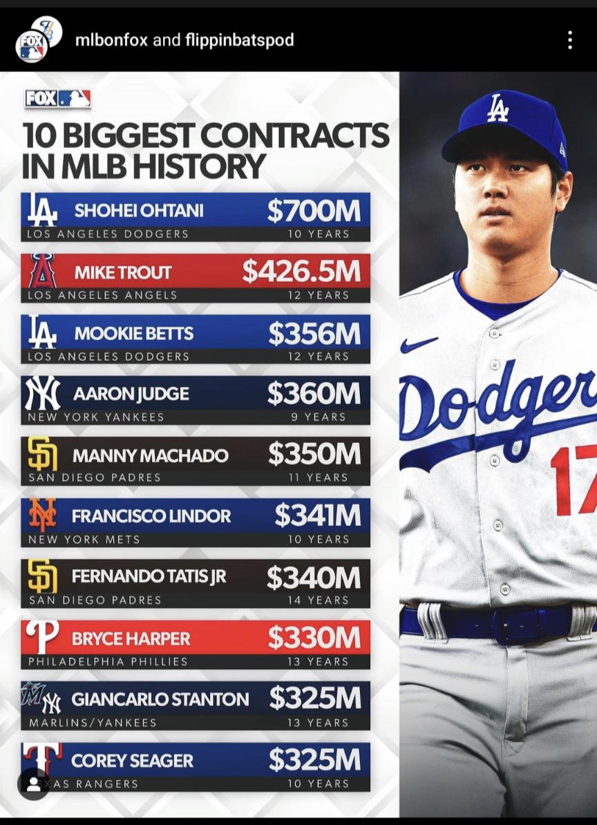 推 kevinurss: 這張扣完稅+公司抽成 不知道大谷實領會多少? 12/10 09:44