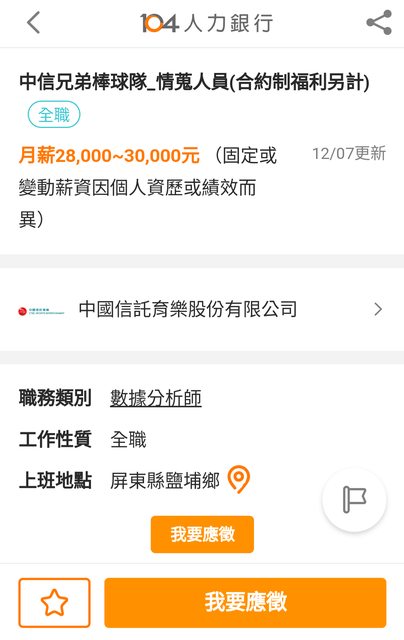 參考看看中信的情蒐人員徵才