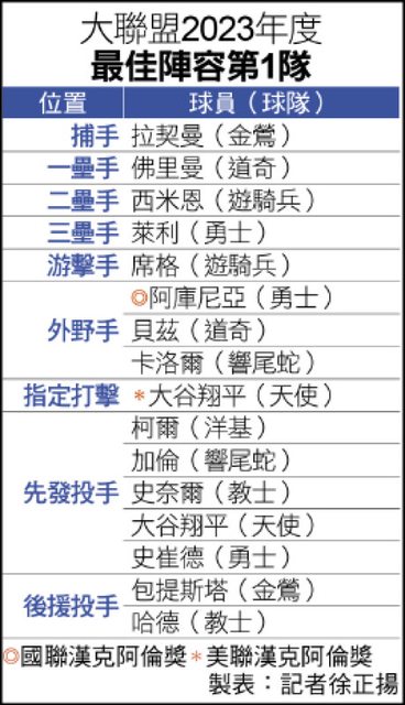 今年美聯、國聯各由大谷翔平、阿庫尼亞
