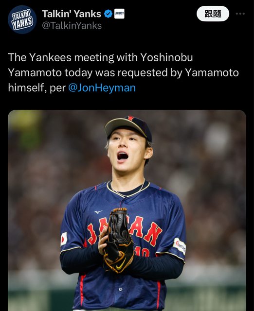 推 gandalflee: 我山本由伸從小有個洋基夢12/18 09:20