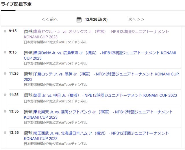 NPB 12球團 KONAMI CUP 2023 青少年錦標賽