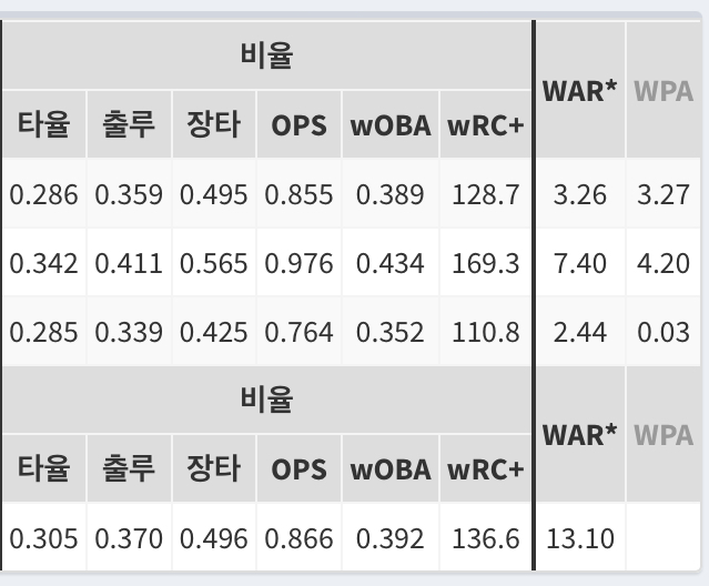 通算打擊三圍 .305/.370/.496 OPS 0.866