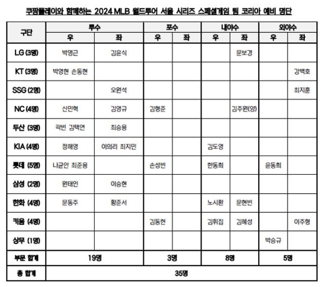 標題[情報] MLB首爾戰熱身賽 韓國隊35人名單