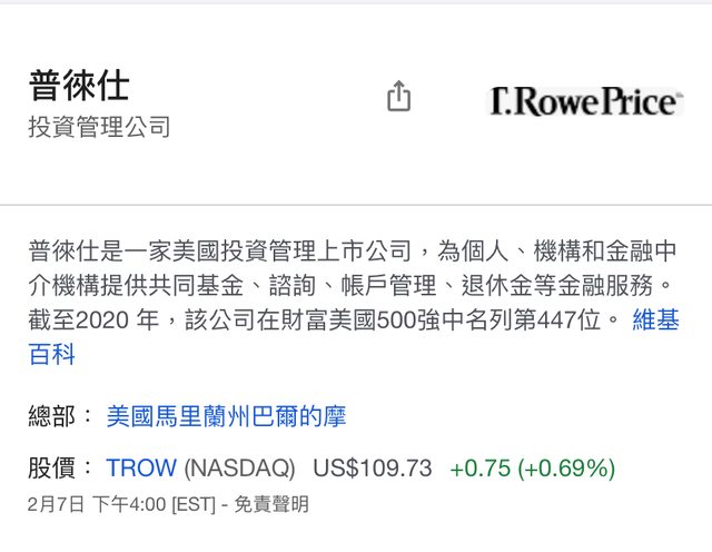 T. Rowe Price在看到新聞後才得知此事