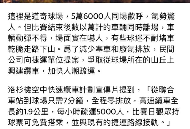 記得道奇球場交通很塞,如果把這纜車搞出來