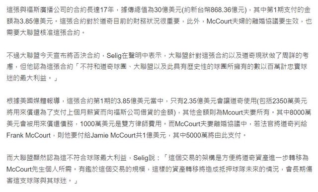 道奇是和時代華納簽下25年83.5億XD