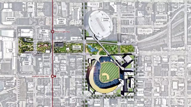 The Royals' proposed new downtown baseball stadium would occupy the space where
