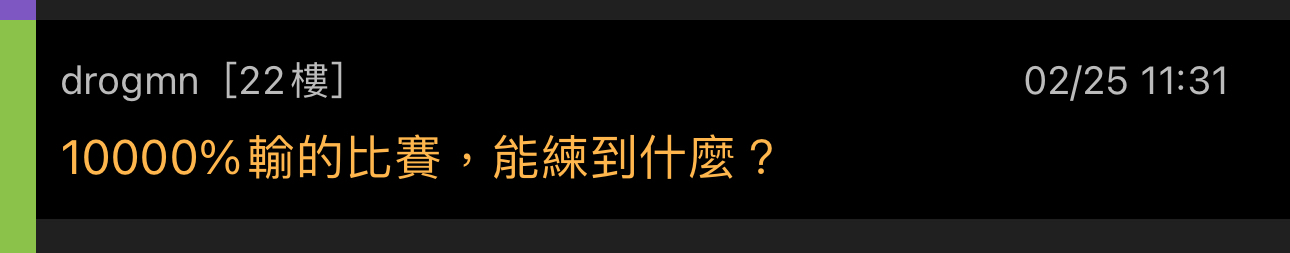 推 drogmn: 10000%輸的比賽,能練到什麼? 02/25 11:31