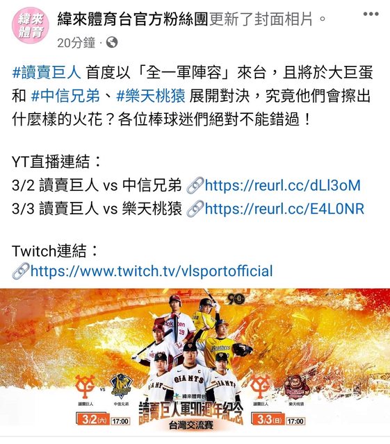 → YuiiAnitima: 緯來臉書刪掉YouTube的部分,只剩Twitch,可能有變數02/26 18:26