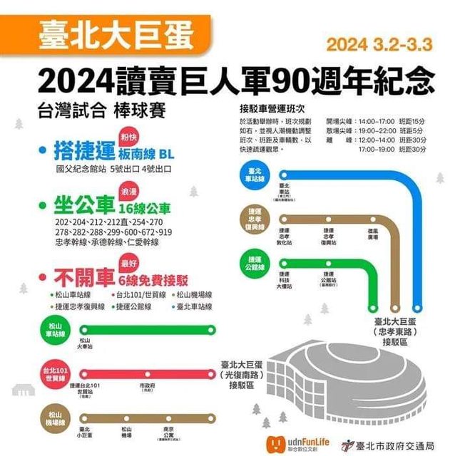 歡迎各地球迷「搭捷運、坐公車、不開車」前來觀賽!