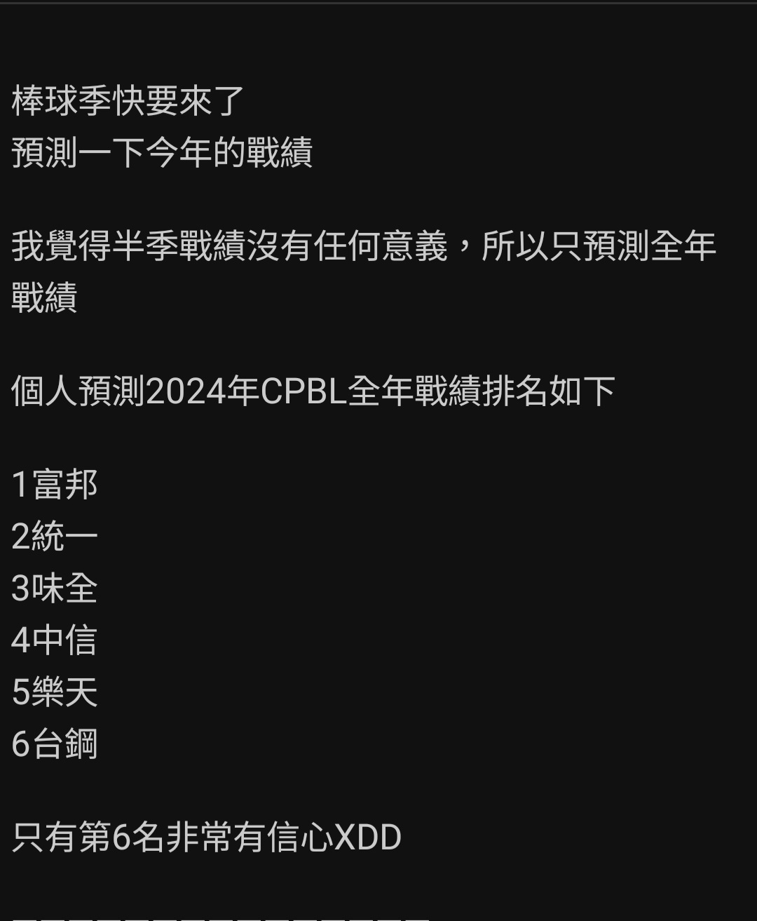 推 EisW: 很難想像牛奶預測的,邦邦輸給台鋼 XD 03/05 00:22