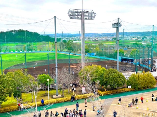 從軟銀春訓基地主球場上方能眺望隔壁第2球場。(記者龔乃玠攝)