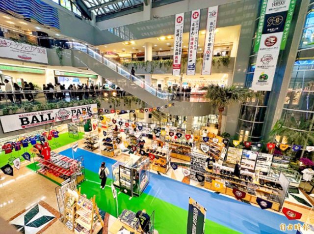 日本宮崎機場內超大型的職棒春訓商品販賣部。(記者龔乃玠攝)