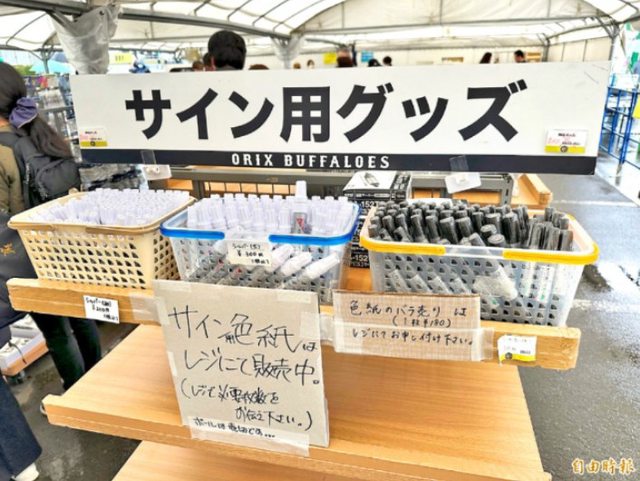 春訓基地簽名商品專區,滿足球迷需求。(記者龔乃玠攝)