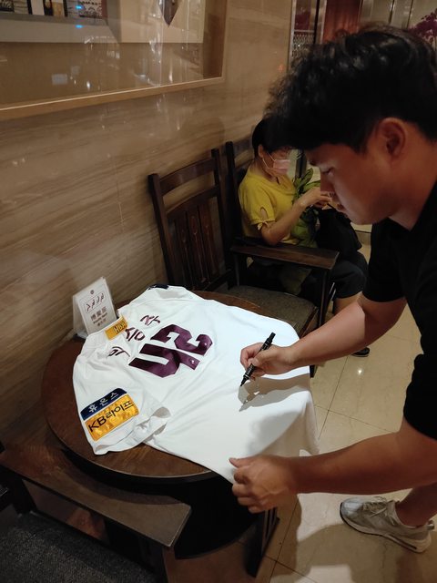 這是我連續兩年與朴承珠見面,大哥也特別帶了一件一軍球衣送我做紀念!