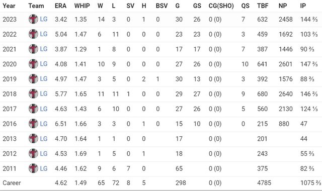 G:30 GS:26 IP:144.2 ERA:3.42 WHIP:1.35 均速141.4