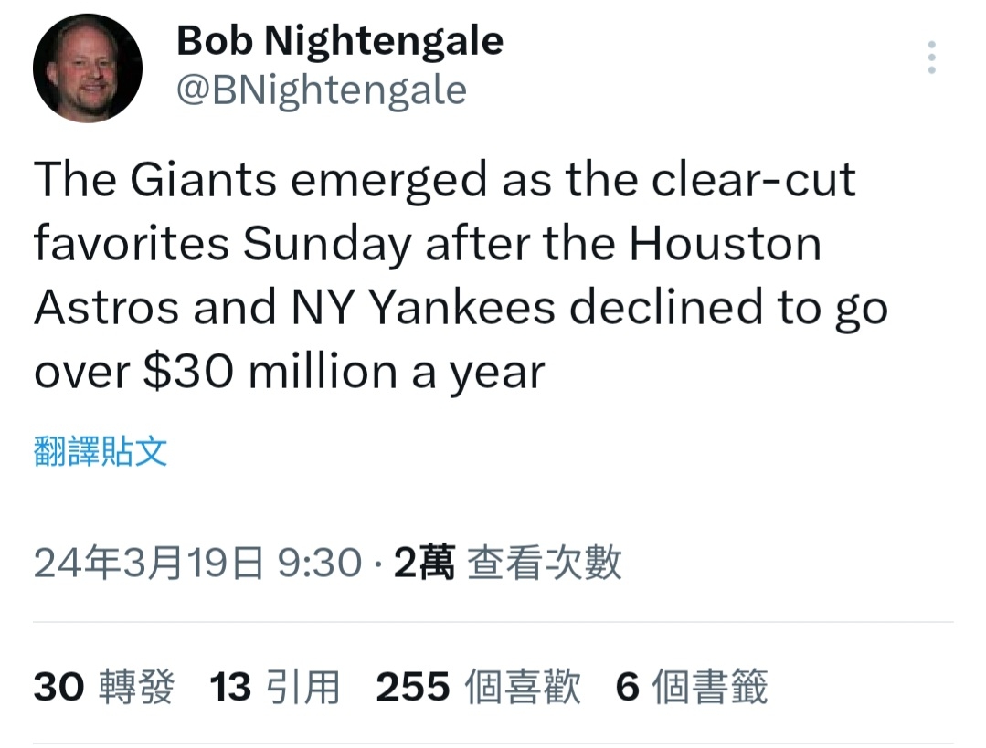 → zxc906383: 洋基給30M還要另外繳一倍的稅金 03/19 09:40