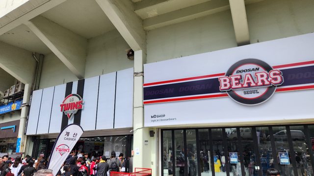 LG雙子跟斗山熊彼此共用主場,商品部就在兩隔壁,像今天LG主場斗山的就沒開,意外的