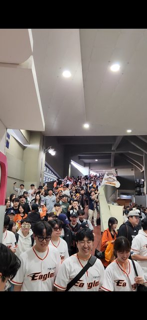 賽後贏球的韓華鷹球迷直接邊散場邊開唱。