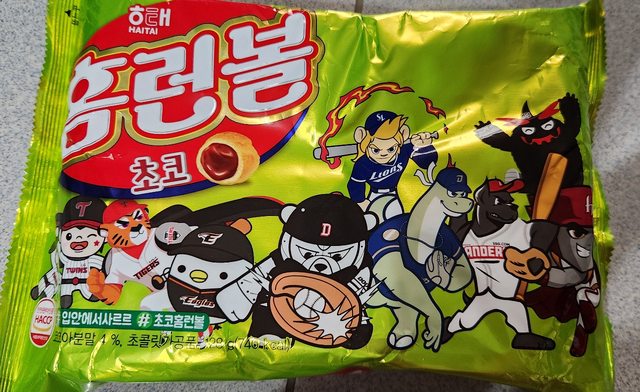 印有所有KBO吉祥物的泡芙當然買啊,不過不知道這個包裝是不是只有球場限定。