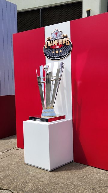 去年LG雙子拿下睽違29年的冠軍,現場有擺出冠軍獎盃還有傳說中的泡盛跟勞力士。