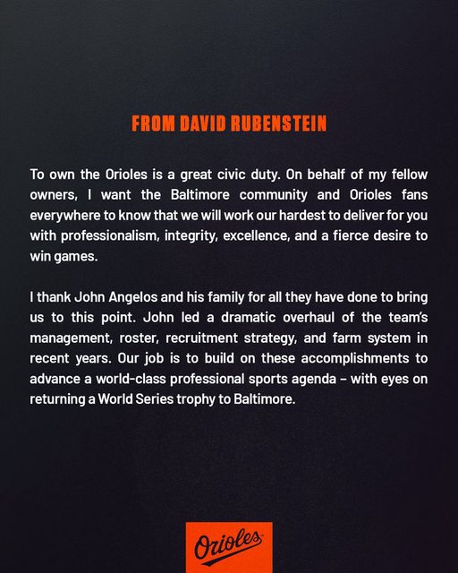 ire David Rubenstein as the new owner of the Baltimore Orioles.