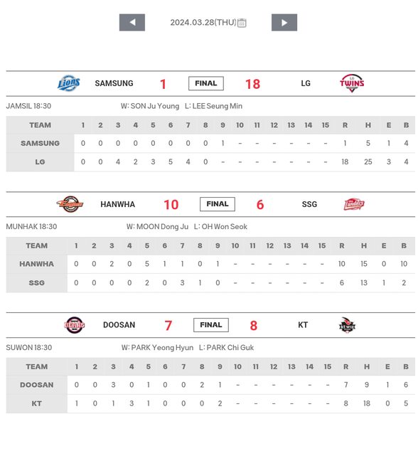 標題[數據] 韓職3/28結果(蠶室紀錄夜LG真‧火力全開)