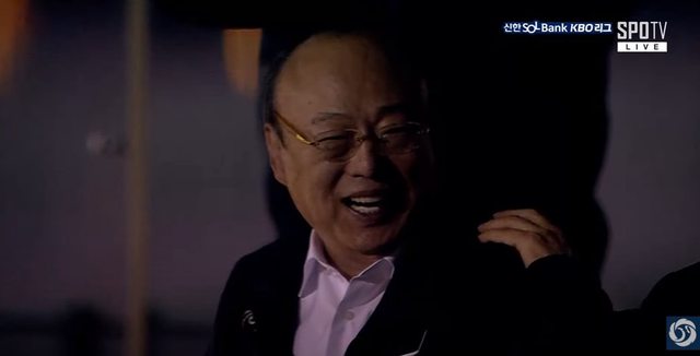 韓華集團會長金升淵親臨主場開幕戰看柳胖投球
