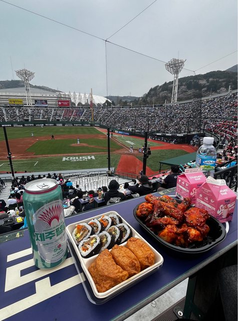 進場前去旁邊的Home Plus買了炸雞壽司啤酒