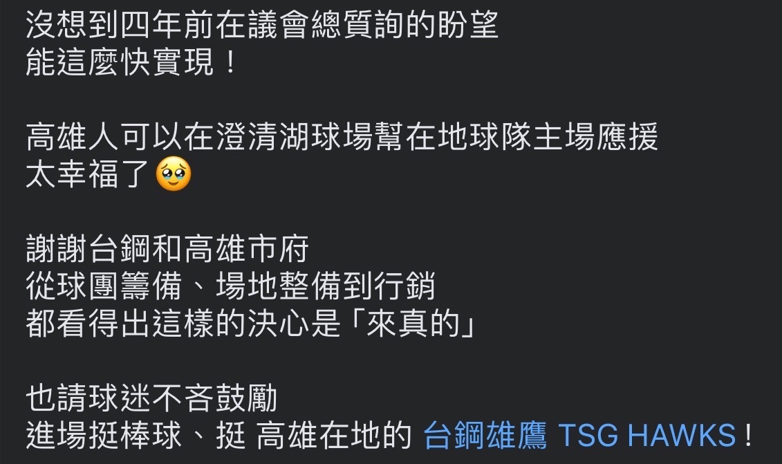 → KURO1214: 澄清湖球場,真的球團要用心一點,不要說不好經營,洪 04/06 08:45