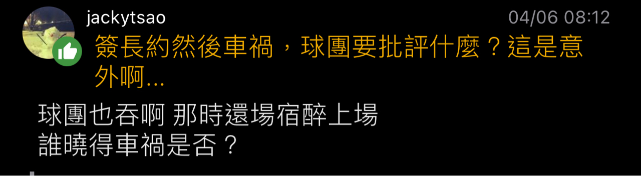 推 jackytsao: 簽長約然後車禍,球團要批評什麼?這是意外啊...04/06 08:12
