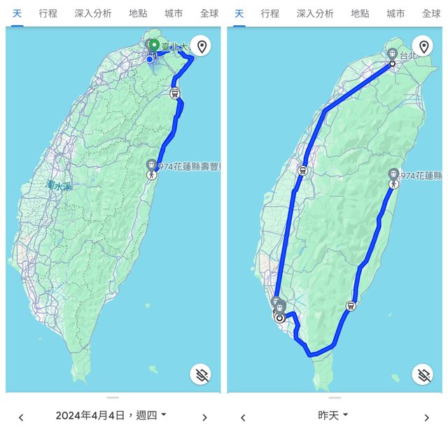 因此google時間軸有這樣的環島紀錄
