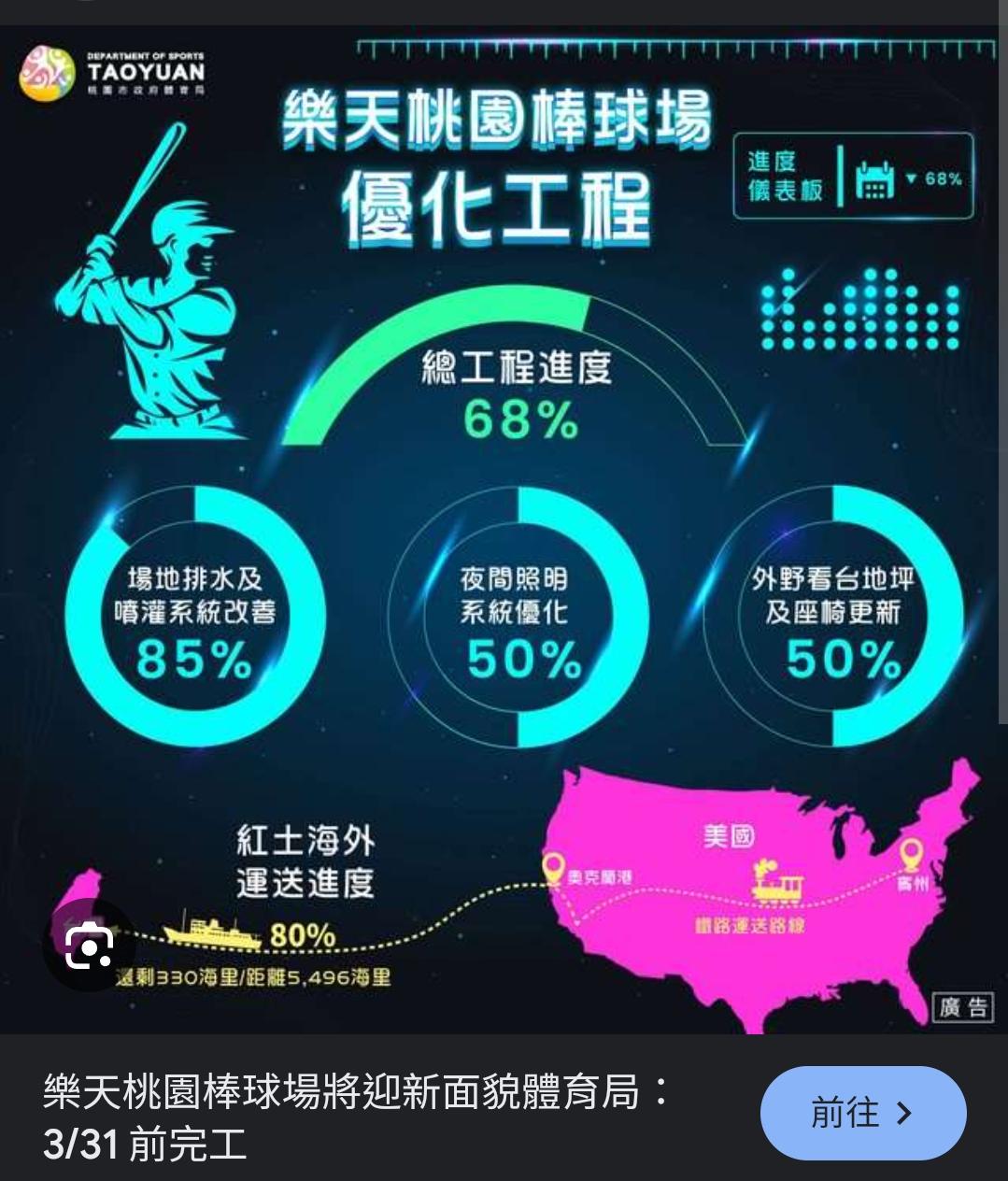推 bbo9527: 桃園棒球場總工程進度99% 市府:最快4/16開打 3月新聞 04/08 17:47