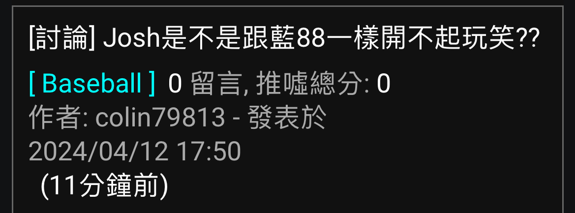 → tinabob1218: 原標題是"josh是不是跟藍88一樣開不起玩笑" 04/12 18:01