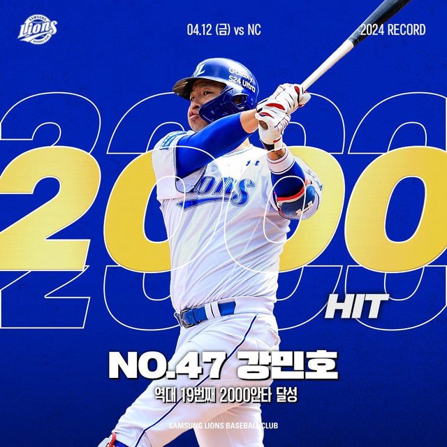 標題[分享] 三星獅隊 姜珉鎬達成生涯2000安
