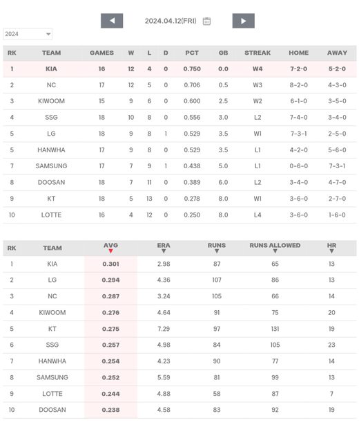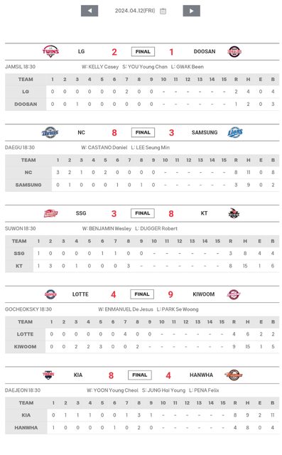 勝:尹映喆(KIA)(2勝)—5+局,3H,4K,2BB,2R(1ER)(77球)