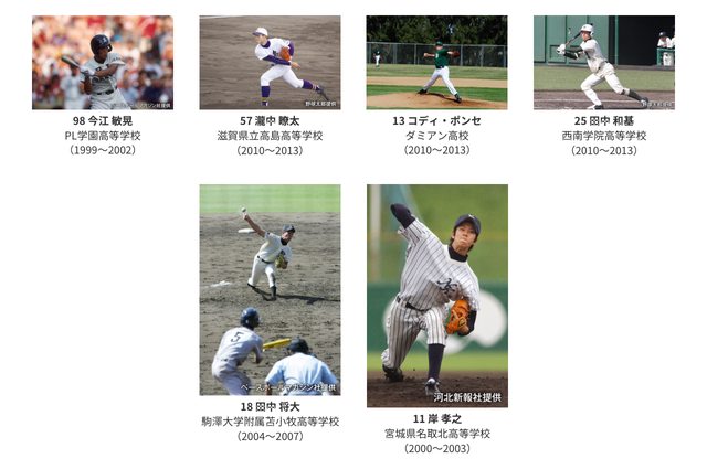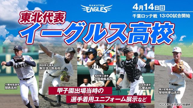 田中将大:駒大苫小牧高校(南北海道) 早川隆久:木更津総合高校(千葉) 小孫竜二:遊学館高校 (石川) 酒居知史:龍谷大平安高校(京都) 櫻井周斗:日大三高校 (西東京) 藤平尚真:横浜高校 (神奈川) 林優樹 :近江高校 (滋賀) 内星龍 :履正社高校 (大阪) 太田光 :広陵高校 (広島) 浅村栄斗:大阪桐蔭高校 (大阪) 黒川史陽:智辯和歌山高校(和歌山) 島内宏明:星稜高校 (石川) 今江敏晃:PL学園高校 (大阪) 來賓:仙台育英学園高等学校 吹奏樂部、啦啦隊部 https://i.imgur.com/Q62vMXB.jpeg