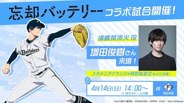 THIRD UNIFORM DAY / 失憶投捕 合作活動 DAZN OTT 轉播 台灣時間 13:00 | 大阪京瓷巨蛋 北海道日本火腿鬥士 6W-6L-0T 1. 郡司裕也 (R) 3B 2. 五十幡亮汰 (L) CF 3. 万波中正 (R) RF 4. Ariel Martinez (R) 1B 5. 加藤豪将 (L) 2B 6. 田宮裕涼 (L) C 7. Franmil Reyes (R) DH 8. 上川畑大悟 (L) SS 9. Andrew Stevenson (L) LF LHP 根本悠楓 3-1, ERA 2.88, WHIP 1.04 (2023) 歐力士猛牛 6W-8L-0T 1. 福田周平 (L) CF 2. 中川圭太 (R) RF 3. 西川龍馬 (L) LF 4. Leandro Cedeno (R) DH 5. 森友哉 (L) C 6. Marwin Gonzalez (S) 2B 7. 頓宮裕真 (R) 1B 8. 紅林弘太郎 (R) SS 9. 太田椋 (R) 3B RHP Luis Castillo 0-1, ERA 3.18, WHIP 1.76 執法裁判 主 山口義治 | 一 小林和公 | 二 山村裕也 | 三 土山剛弘 ─────────────────────────────────────── 轉播頻道 講評 主播 場邊 轉播時間 平台 [台灣] 台灣 DAZN OTT 岡義朗 田中大貴 上田あんず 12:55~ OTT限定 [日本] J SPORTS 3 岡義朗 田中大貴 上田あんず 12:30~ BS244 BS-TBS 槙原寛己 初田啓介 13:00~15:53 BS161 15:53~ BS162 網路直播 [台灣] 台灣 DAZN OTT (付費) [日本] パ・リーグTV (付費) 日本 DAZN OTT (付費) Rakuten TV (付費) ベースボールLIVE (付費) スカパー!番組配信(付費) [文字直播/BOX] スポーツナビ https://reurl.cc/5vgzDz 日刊スポーツ https://reurl.cc/5vgz6v dメニュー https://reurl.cc/0vzR4b NPB.jp https://reurl.cc/1vQqXV 球場活動 ・4/14 イベント情報 https://www.buffaloes.co.jp/event/information/2024/0414 ・サードユニフォームデー https://www.buffaloes.co.jp/special/spirits/2024/ ・TVアニメ「忘却バッテリー」×オリックス・バファローズ コラボ試合 https://www.buffaloes.co.jp/news/detail/202400410657 https://www.buffaloes.co.jp/news/detail/202400416259 ・「忘却バッテリー」コラボ限定グッズ! https://www.buffaloes.co.jp/news/detail/202400423732 THIRD UNIFORM DAY https://i.imgur.com/srTWAEl.jpg