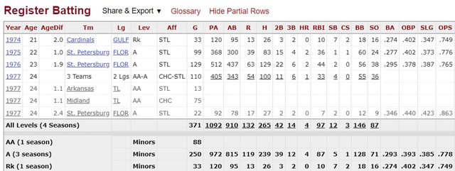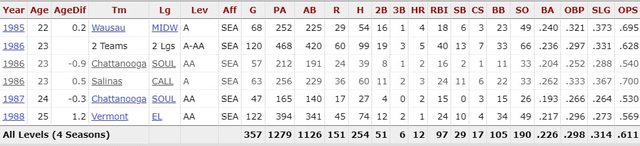 生涯在小聯盟打過一年(1994年高A) OPS.372