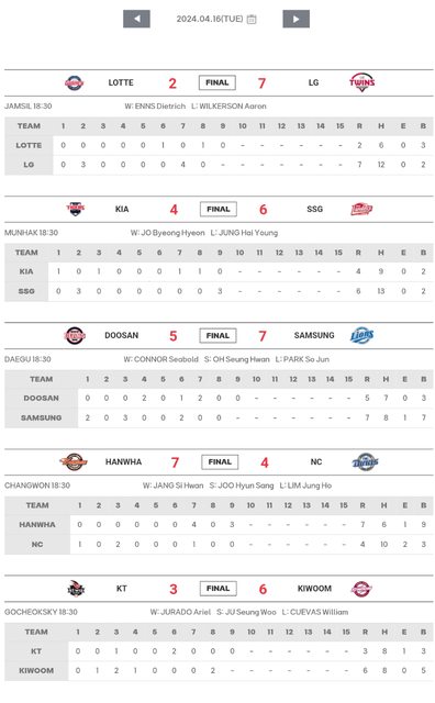 勝:Connor Seabold(三星)(1勝)—5 ⅓局,4H(1HR),6K,2BB,1HBP,3R(3ER)(89