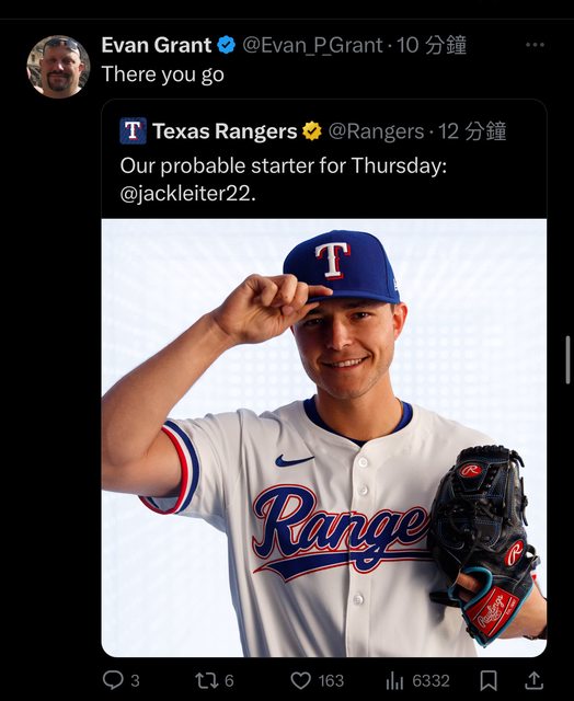 如此好表現也讓遊騎兵決定開箱,將在老虎主場面對前田健太。