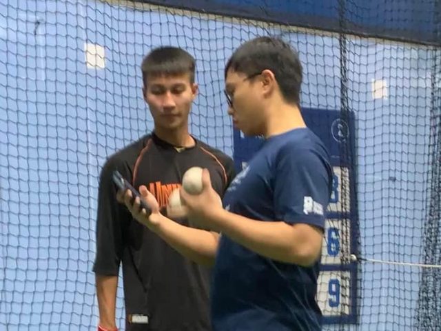epara基地進行運科檢測,他的打擊動作與揮棒速度就讓負責訓練的 #林韋丞 教練留下深