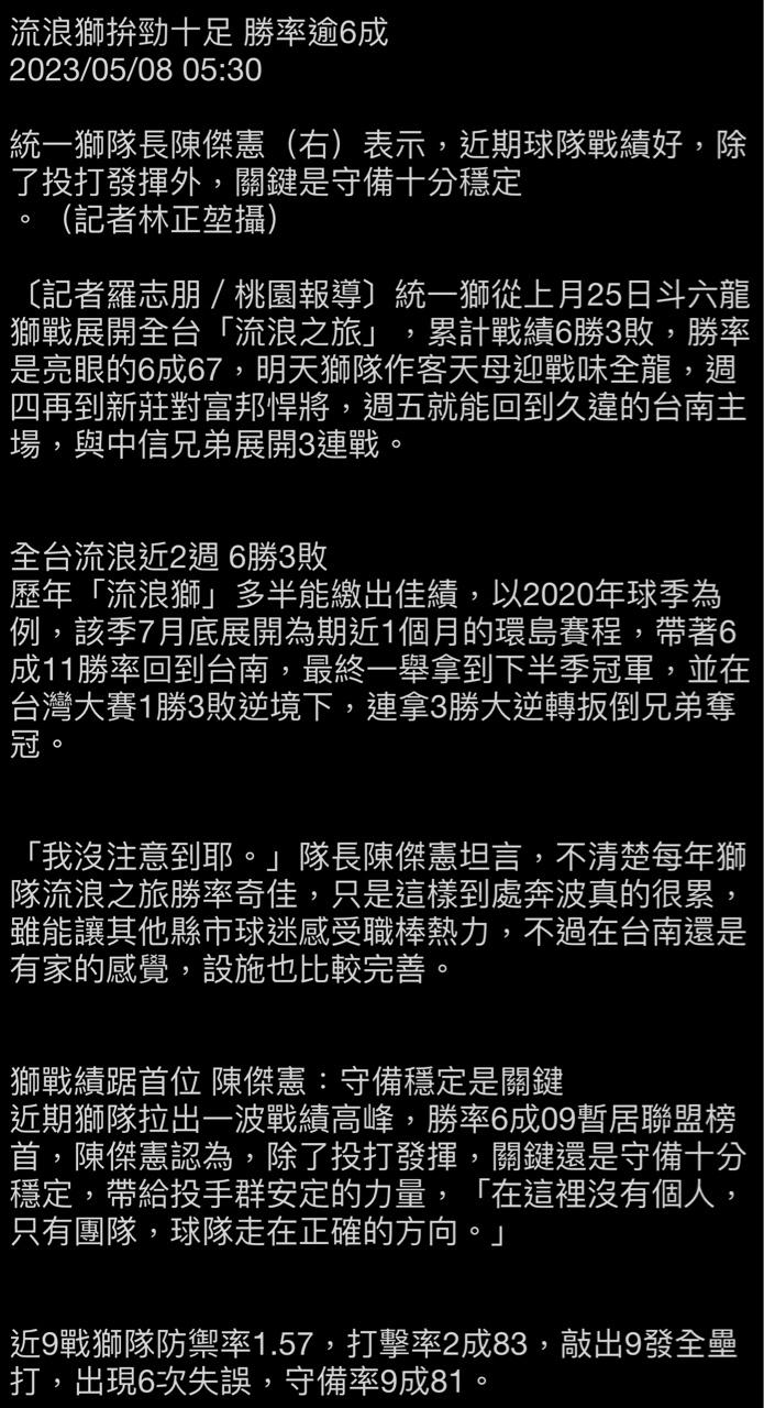 → JER2725: 統一獅:我流浪的時候超強 04/18 09:19